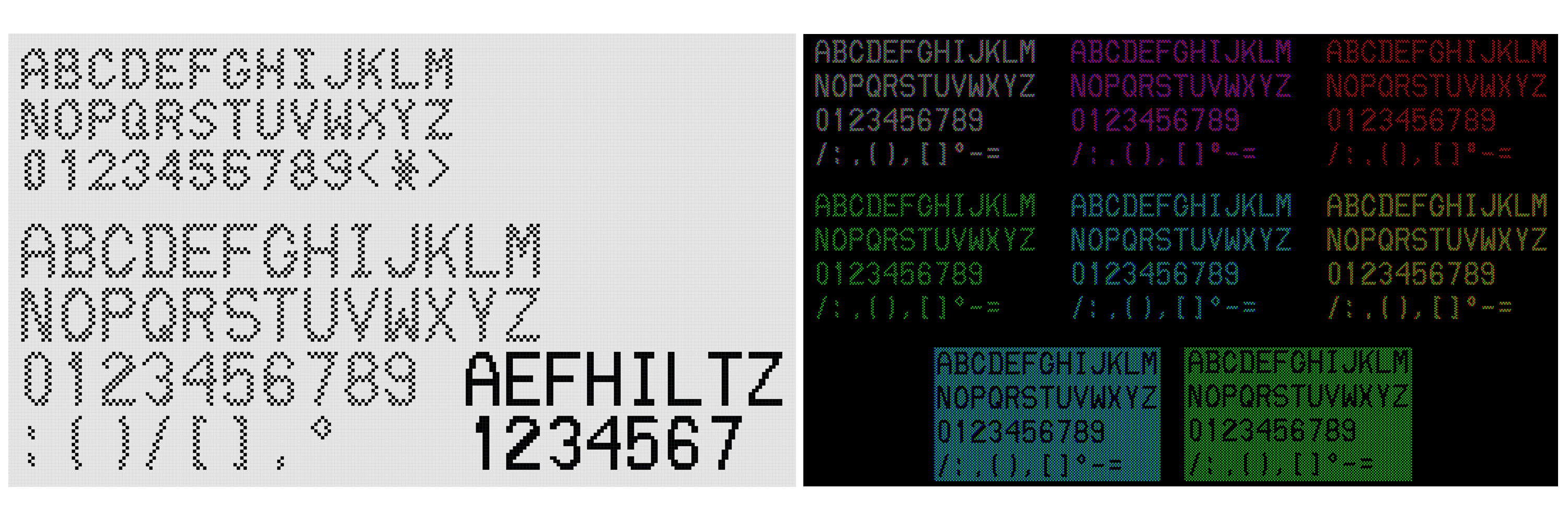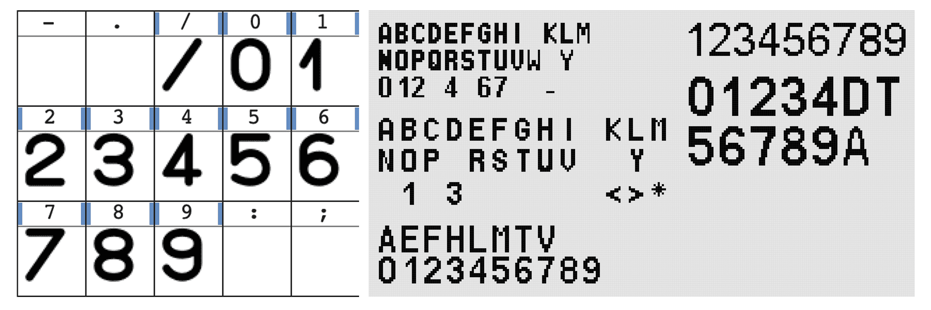 One last thing: we rework our fonts as new information and references come, some of which have fundamentally changed our understanding of the displays’ workings (e.g., subpixel array design). As an example, here are photos of our DCDU font before and after reworking (click to enlarge):